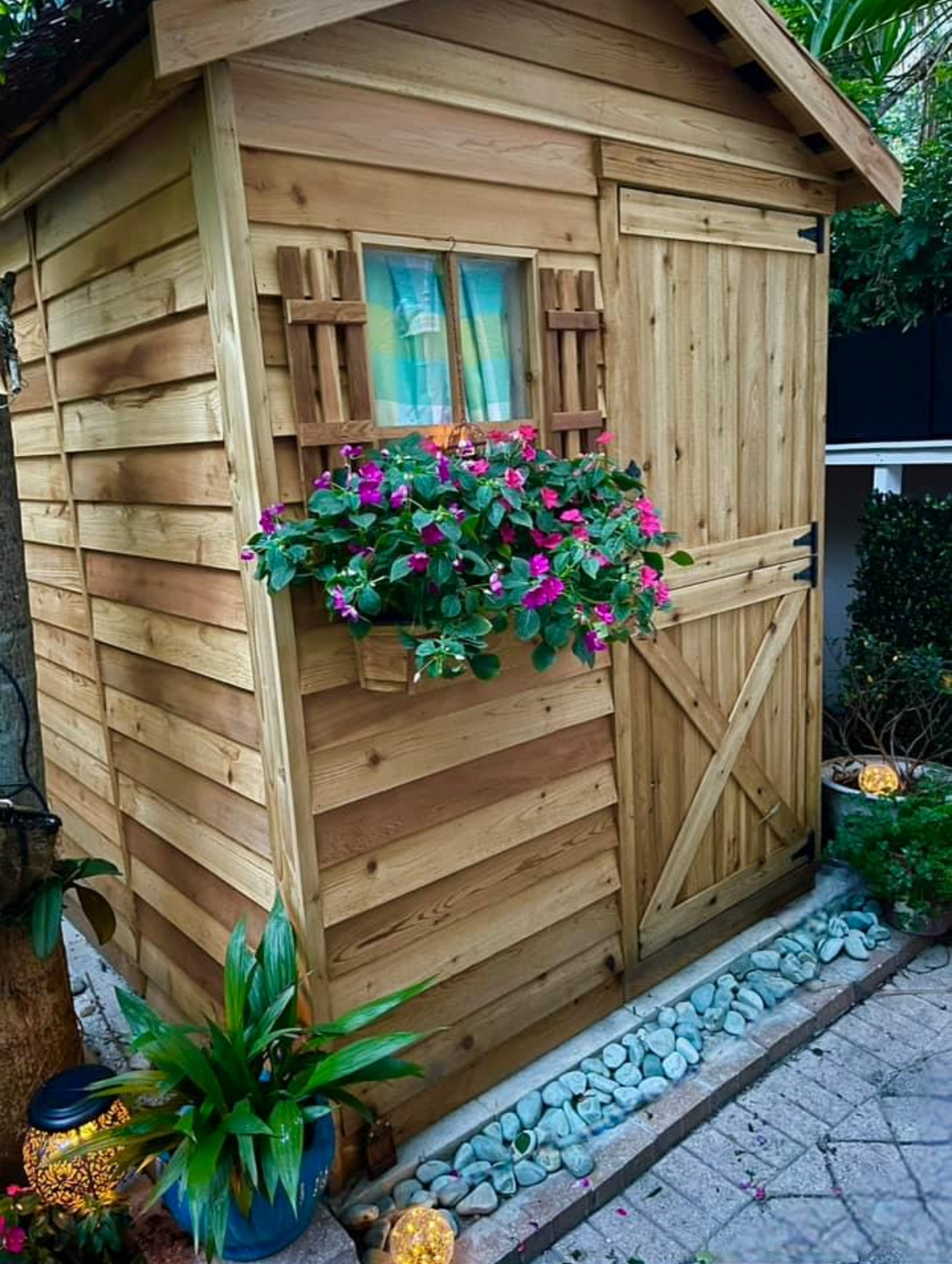 "Everyone that helped me put it together and everyone in my family has been very impressed with how I found such a nice-looking little garden shed. It looks so nice, settled in with our four redwoods. It makes such a good clubhouse for the grandchildren."